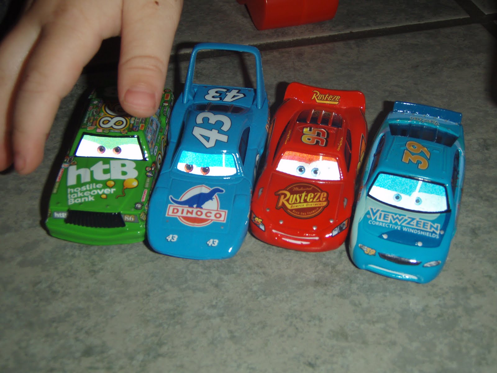 The most prized surprise in his Easter basket were these 4 cars: Chick Hicks, The King, McQueen, and a new guy. Their eyes do cool things like change the direction they move and close.